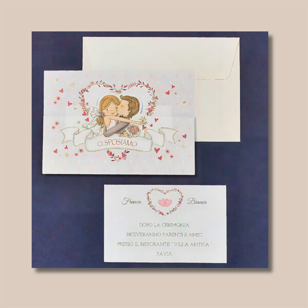 Partecipazione elegante e classica realizzata in carta avorio chiaro